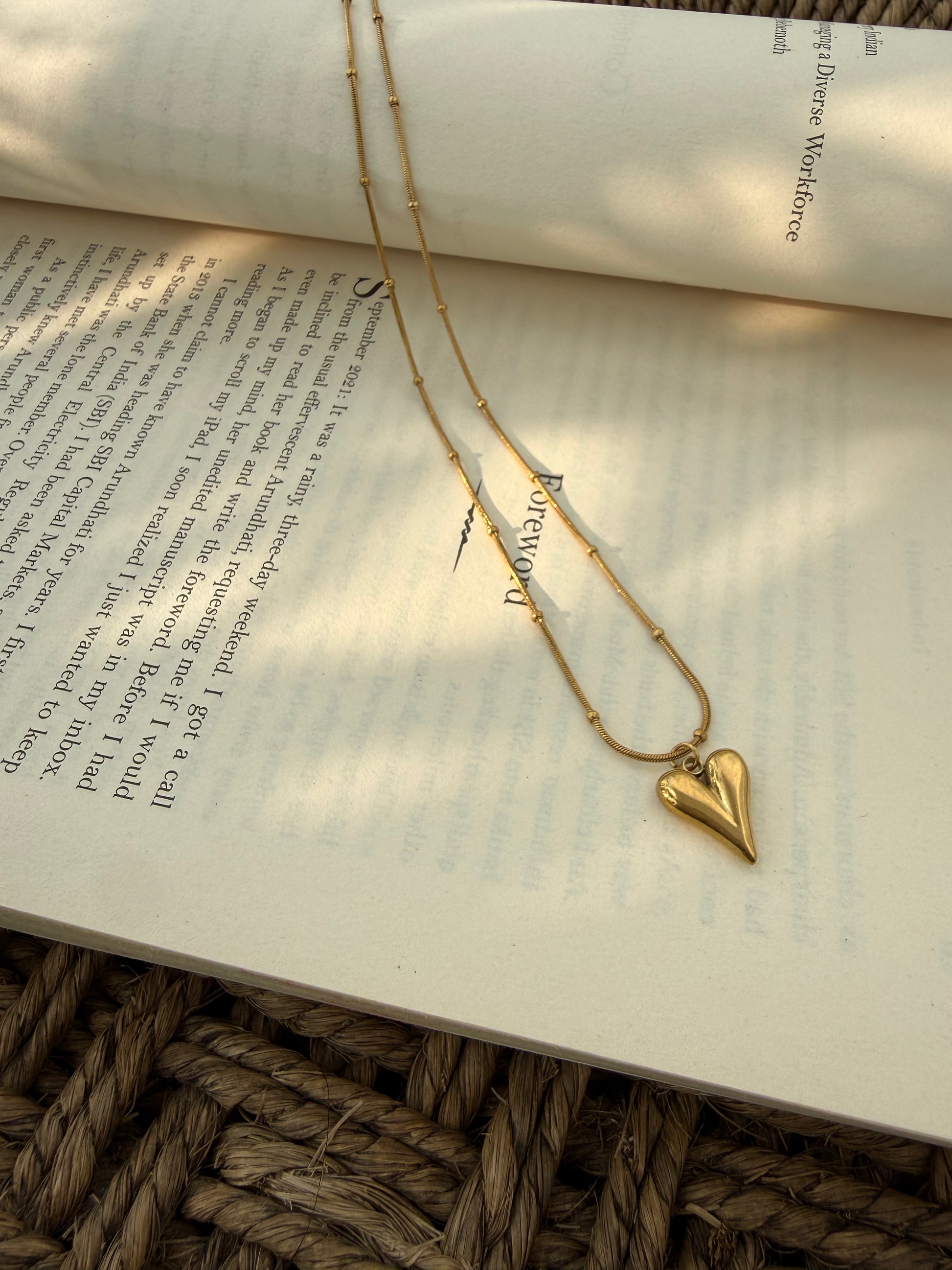 A delicate heart-shaped pendant paired with a fine beaded chain, crafted in anti-tarnish material for lasting shine. Minimal, elegant, and perfect for everyday wear.